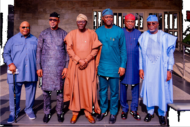 The South-West Governors Forum meeting being hosted by its Chairman and Lagos State Governor, Mr. Babajide Sanwo-Olu, is attended by Governors Seyi Makinde (Oyo), Lucky Aiyedatiwa (Ondo), Biodun Oyebaniji (Ekiti), Dapo Abiodun (Ogun) and Ademola Adeleke (Osun).