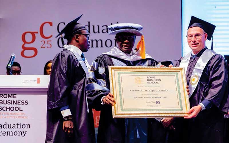 The founder of Rome Business School and Rome Business School, Nigeria, Prof. Antonio Ragusa, said Governor Sanwo-Olu was conferred with a Doctorate in Business Administration in recognition of his outstanding leadership, dedicated service and unwavering commitment to the development and well-being of Lagos State.